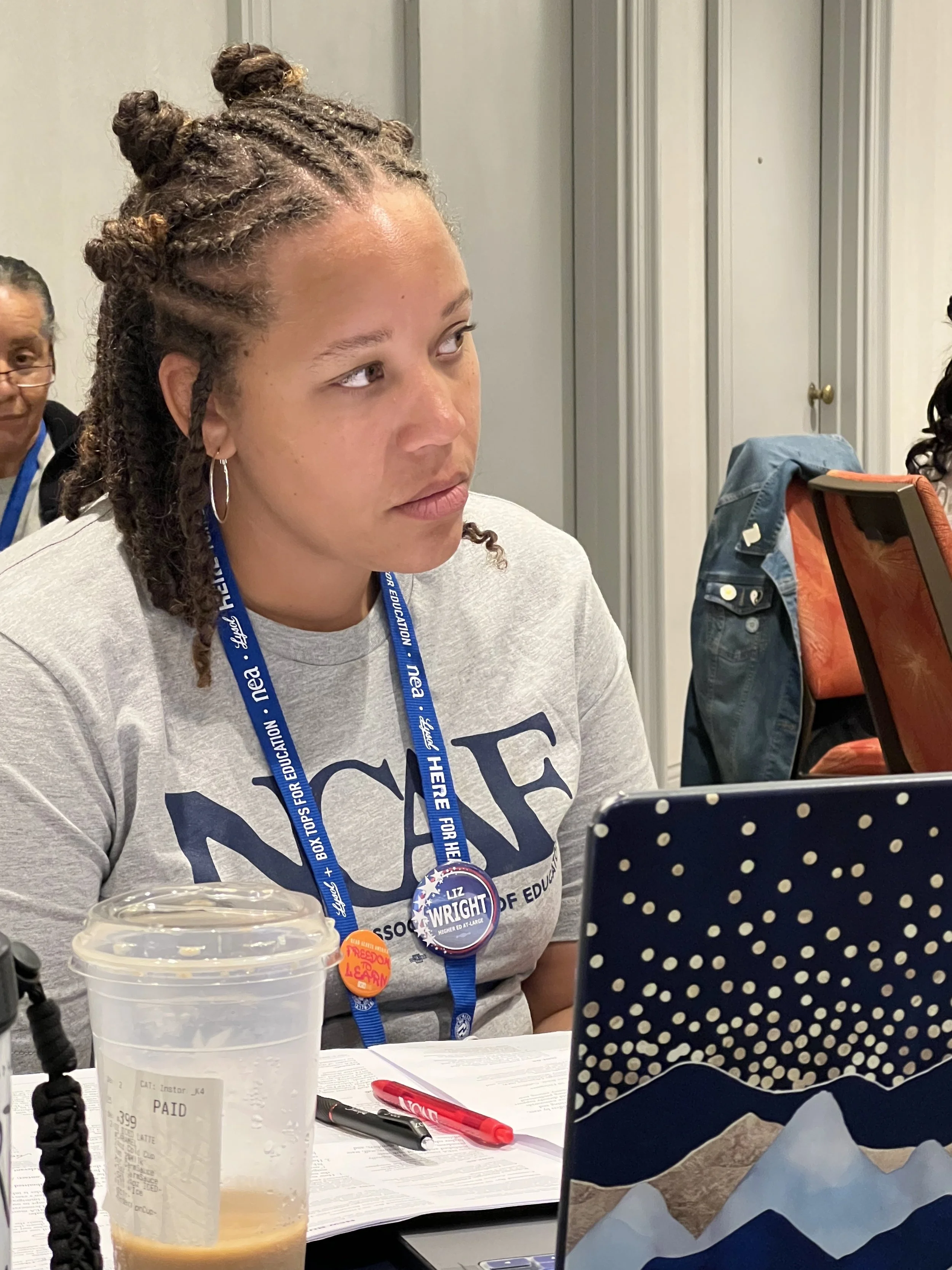 I am a Black woman educator and organizer, born and raised in an Appalachian holler in Ashe County. I am a proud product of Ashe County Public Schools, a humble school district nestled in the Blue Ridge mountains. I am a Special Education teacher by trade, and since 2022 the proud President of Wake NCAE. I’ve had the honor of working with many of you as Region 5 Director on the NCAE Board, an SMO trainer, and in so many other spaces over so many years.